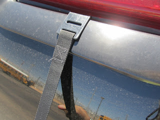 I didn’t realize but CURT has a bike rack support strap. I wanted to write this blog to also make other CURT rack owners aware of this addition. This strap is easy to use and attach. It comes in two pieces, which through a buckle the size can be adjusted and tightened. The strap end with the metal “L” slips in between your hatchback and body of the vehicle. The length of the strap measures 61 inches long. This strap then runs down the the buckle. The buckle end attaches around your hitch mounted rack. I put mine just under the top tube frame hook, that keeps the top tube of the bike securely in place. This prevents it from eventually slipping off, over the top. When the two straps are separated in makes it easier to remove the bike closest to the vehicle. The strap can be used on both the CURT #18086 and the #18084. (CURT tray-style hitch-mounted bike rack #18086, which holds up to four bikes or the CURT tray-style hitch-mounted bike rack #18084 which can hold up to two bicycles.) Using this strap is required if using the hitch mounted 1 1/4” shanked bike rack, and will void the warranty to both the trailer hitch and bike rack. It is highly recommended however when using the hitch mounted 2” shanked bike rack. The strap adds great support.
